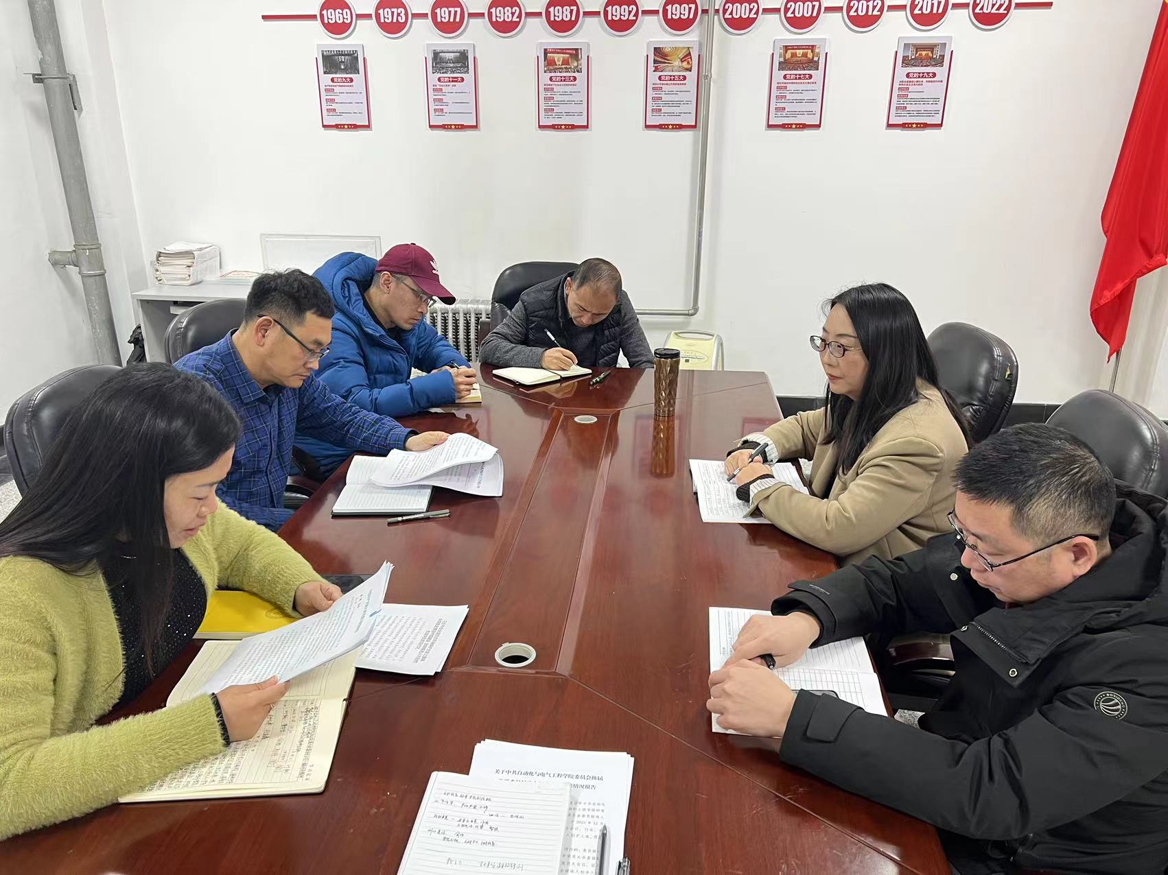 党委在党员活动室进行中心组理论学习,会议由党委书记叶凯主持,学院中心组成员出席会议。