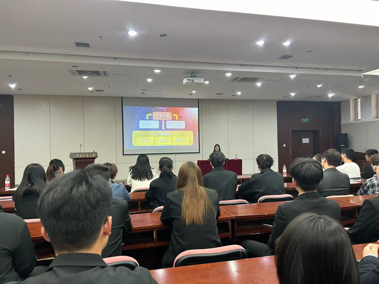 王帅老师结合所带学生的经验,从学风的概念出发,强调了学生干部是学生与老师之间的桥梁,要自觉肩负起学生干部的职责,不断锻炼自己服务同学的能力。王帅老师从加强队伍建设、整合校内外资源、明目标优方法、创新创业平台等四个方面,向在座的学生干部、青马学员提出建议,要发挥学生干部的主观能动性,深入学生群体中调研,既要关注学生“本生”的个人需求,也要关注学生“代表”的集体需求,在评奖评优、文化活动、创新创业、朋辈帮扶等方面充分发挥作用。